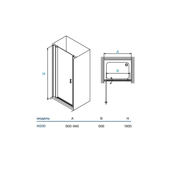 Душевая одноэлементная дверь N890 имеет размер 900×1900 мм, открывающаяся наружу. Это практичное и удобное изделие, отлично справляющееся со своими функциями. Душевая дверь имеет хромированный профиль, прозрачное или матовое стекло 6 мм.