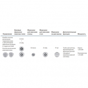 Получить максимальное удовлетворение от принятия водных процедур можно с помощью высококачественной гидромассажной системы Koller Pool COMFORT COMBI. Эта модель способна приятно порадовать своим качеством и надежностью. Установив ее в своей ванной комнате, вы сможете регулярно наслаждаться не только аэромассажем, но и гидромассажем. Кроме этого предусмотрена и такая замечательная процедура как аромотерапия. Значительное удобство во время эксплуатации обеспечивается двумя пневматическими кнопками. Эта модель станет достойным дополнением вашей ванной, и вы в скором будущем сами сможете по достоинству оценить все преимущества этой модели.